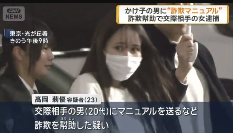 高岡莉優容疑者(23)が詐欺幇助の疑いで警視庁に逮捕されたニュースが、テレビ・ネットで大きな話題を呼んでいます。